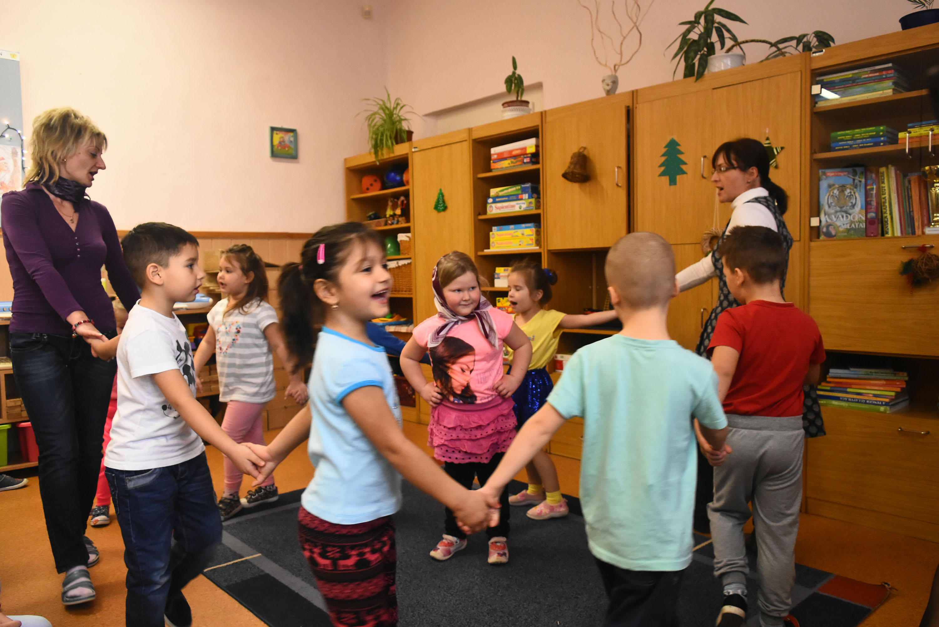 Senánszky Flóra és Fásy Ádám az óvodások gyűrűjében
